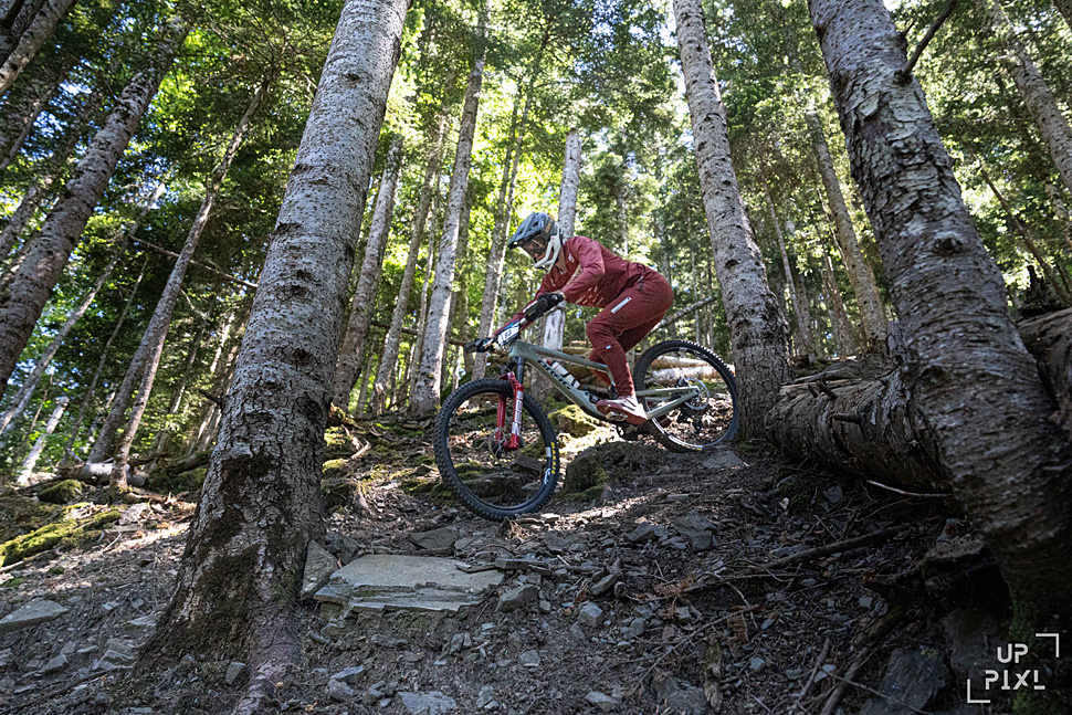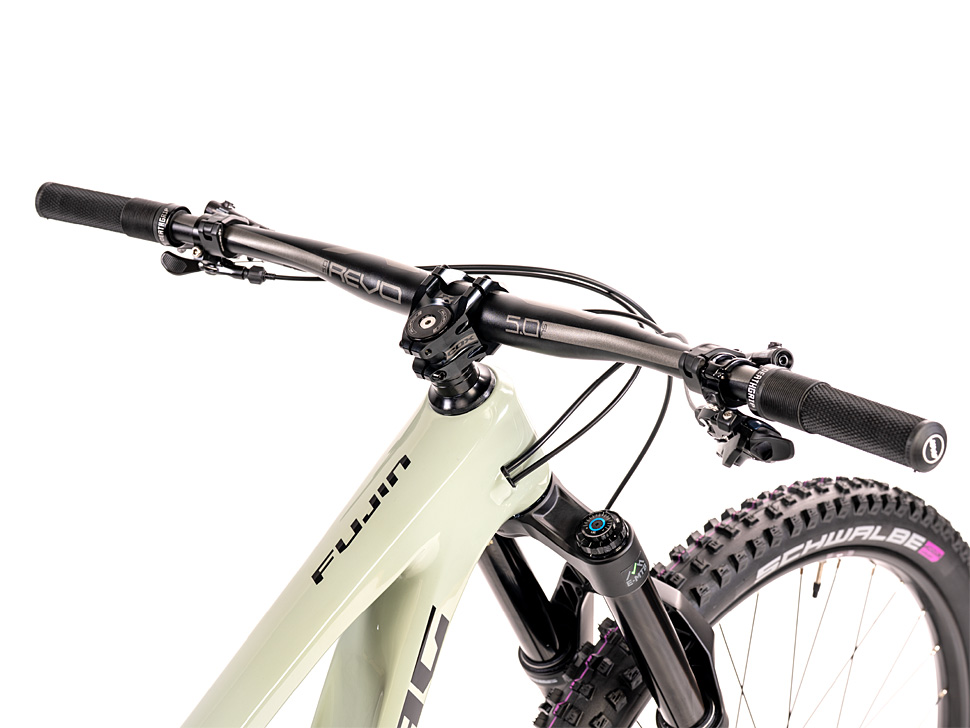 С оглед на казаното дотук, най-важното по отношение на Fujin няма да е новост за много от читателите на МТБ-БГ. Рамката е изцяло карбонова, включително задният триъгълник. Геометрията е модерна и агресивна, колелата са 29-цолови, а ходът на окачването е 180 мм. Fujin е велосипед, който няма да се уплаши дори от трасетата за спускане, но все пак основното му предназначение е ендуро карането, особено по стръмни и трудни терени, а също така е доста подходящ и за байкпарковете.