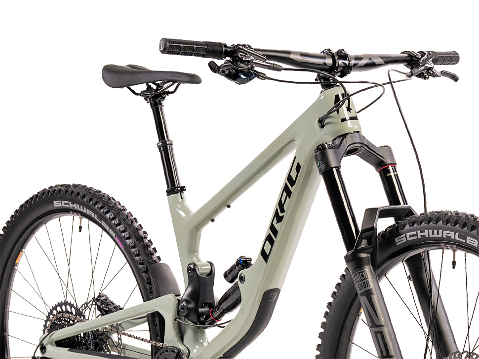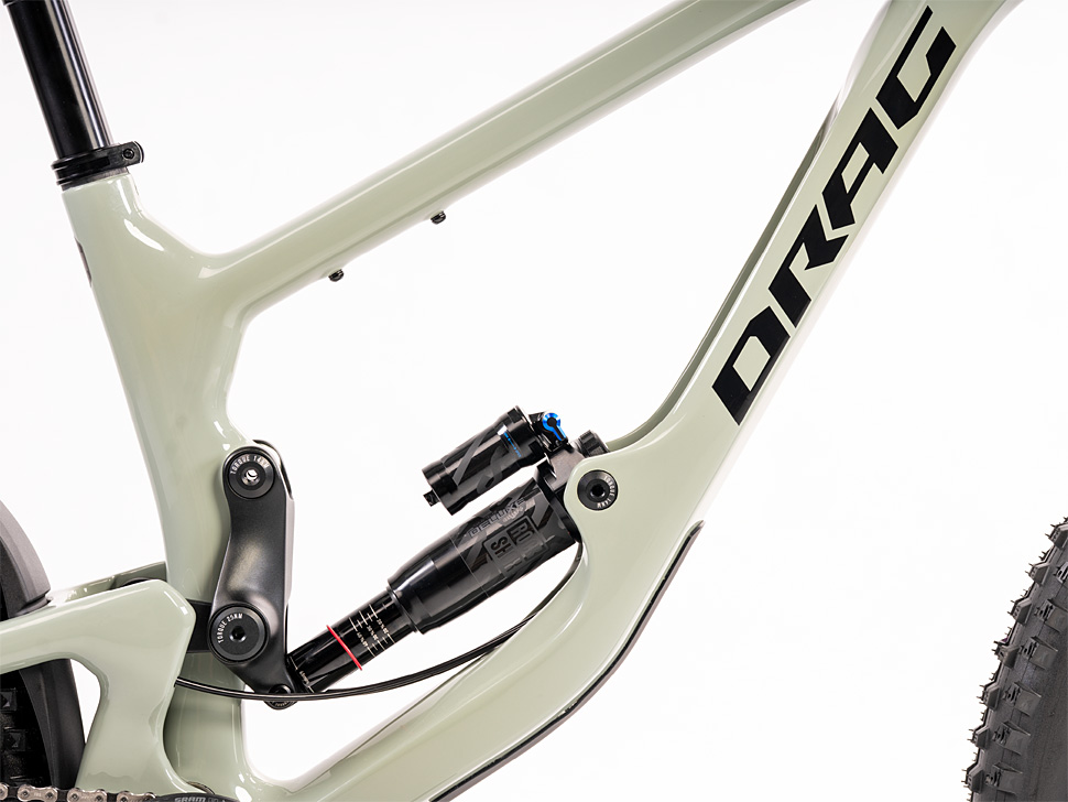 За основните характеристики на байка може да прочетете в следващите редове, но това, което за момента предизвиква най-много вълнение сред публиката, е рамката и нейното очевидно сходство с модела Giga на Nukeproof. Понякога лошото стечение на обстоятелствата за някого може да е добра възможност за друг, при това дори без вторият да е желал или допринесъл по какъвто и да е начин за нещастието на първия. Горе-долу така бих описал ситуацията около Fujin. Вероятно ви е известно, че преди година или две марката Nukeproof (или по-скоро компанията-собственик над нея) , казано най-простичко фалира и прекрати дейността си. Оказа се обаче, че това е дало възможност на други марки, сред които и Drag, да закупят и ползват рамки, разработени и/или произведени за Nukeproof. Това е директното обяснение на факта, че Fujin си прилича като две капки вода с модела Giga – не става дума за копиране на дизайна или нещо подобно, а чисто и просто това е същата рамка.