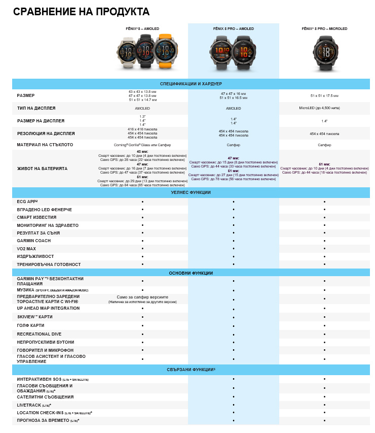 Вижте и едно сравнение на двата нови продукта с досегашния fēnix 8 Amoled:
