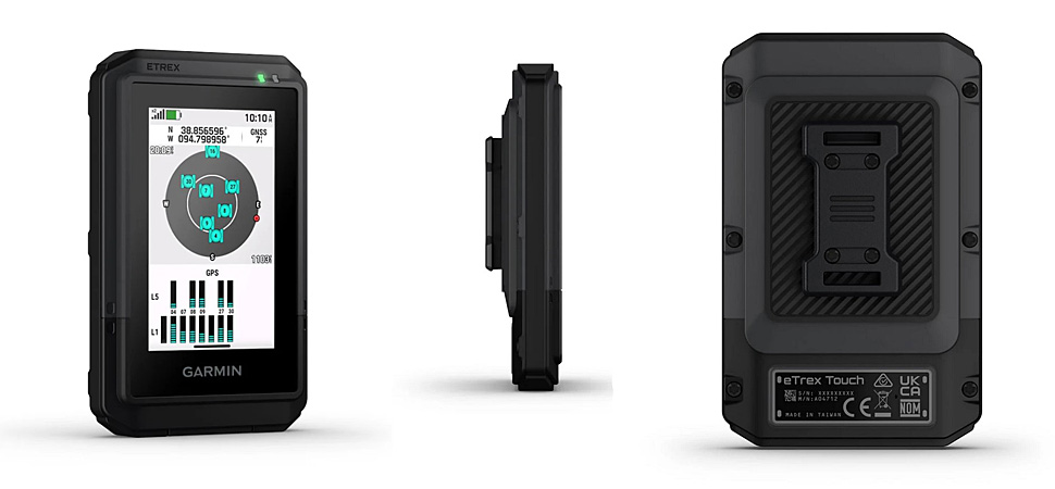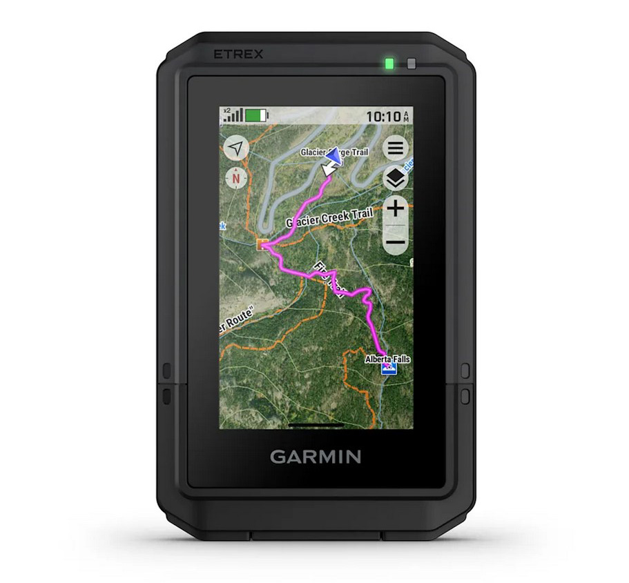 Без съмнение най-усъвършенстван сред тях е новият eTrex Touch с цена 880 лв. Както показва името, този уред използва сензорен екран – цветен, с висока резолюция и четим при директна слънчева светлина. Размерът на дисплея е 3 инча по диагонал, а самият уред е 6.6х10.5х2.5 см с тегло 150 грама. „Ръбатият“ дизайн създава впечатление за здравина и издръжливост, което не е фалшиво – уредът покрива стандарта за водоустойчивост и прахоустойчивост IP67, както и военния стандарт за удароустойчивост MIL-STD 810. За да осигури прецизно позициониране, eTrex Touch поддържа multi-band GPS и multi-GNSS технологии, които дават достъп до множество честоти, изпращани от навигационни спътници. Налице е и барометричен алтиметър. Батерията е вградена, литиево-йонна и осигурява до 130 часа работа в стандартен режим и до 650 часа в икономичен (експедиционен). Паметта също е вградена и е 32 GB – по принцип са напълно достатъчни, но за някои може би ще е недостатък липсата на слот за допълнителна карта с памет. Освен предварително заредените в уреда топографски карти, можете да се абонирате и за услугата Outdoor Maps+, с която получавате достъп до голямо разнообразие от първокласно картографско съдържание, включително сателитни изображения, къмпинги и други. Изтеглянето и получаването на автоматични актуализации става чрез Wi-Fi® връзка. Ако свържете уреда с приложението Garmin Explore, можете да разполагате и да управлявате данните в него и чрез телефон/таблет, както и да получавате прогнози за времето и смарт известия. eTrex Touch използва нова стойка за монтаж Spine Mount 2, която е съвместима с различни аксесоари, включително и със стойка за монтаж на велосипедно кормило.