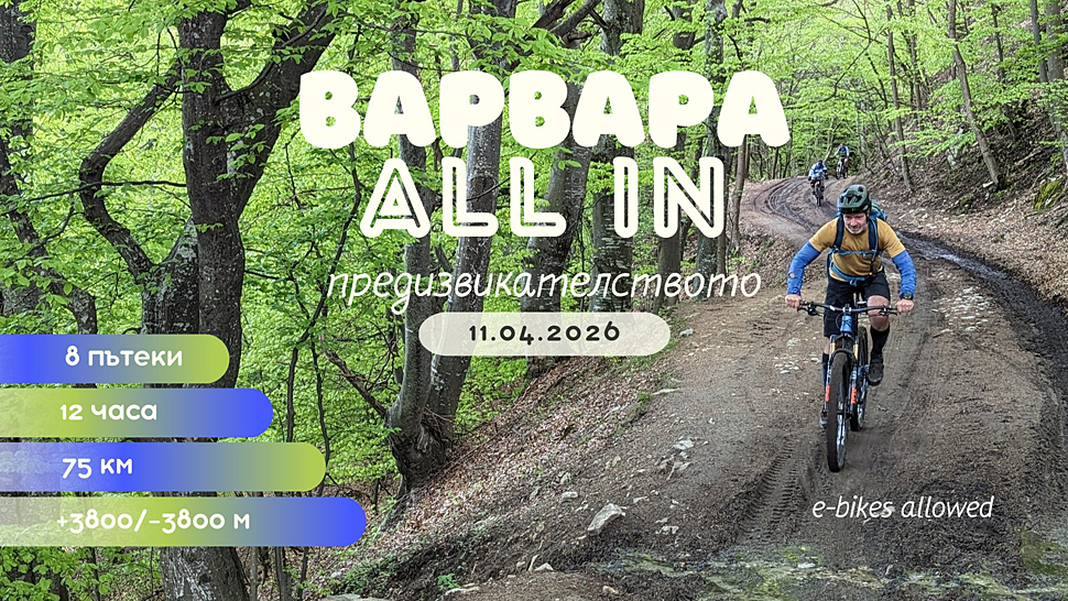 Варвара All In е маунтин байк събитие за издръжливост. Идеята на предизвикателството е всеки участник да се опита да кара всички близки до Варвара маркирани пътеки – сегментите от 101 до 108: