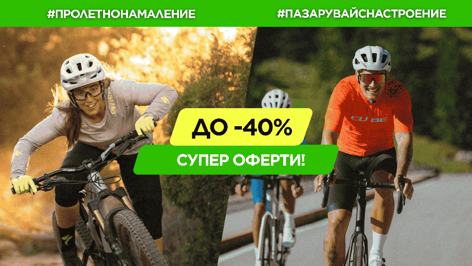 А знаеш ли още кое освобождава хормони на щастието? Изгодното пазаруване – доказано е! Затова през месец април в Bike Center те очакват супер промоции за началото на сезона, които ще изстрелят доброто ти настроение в небето.