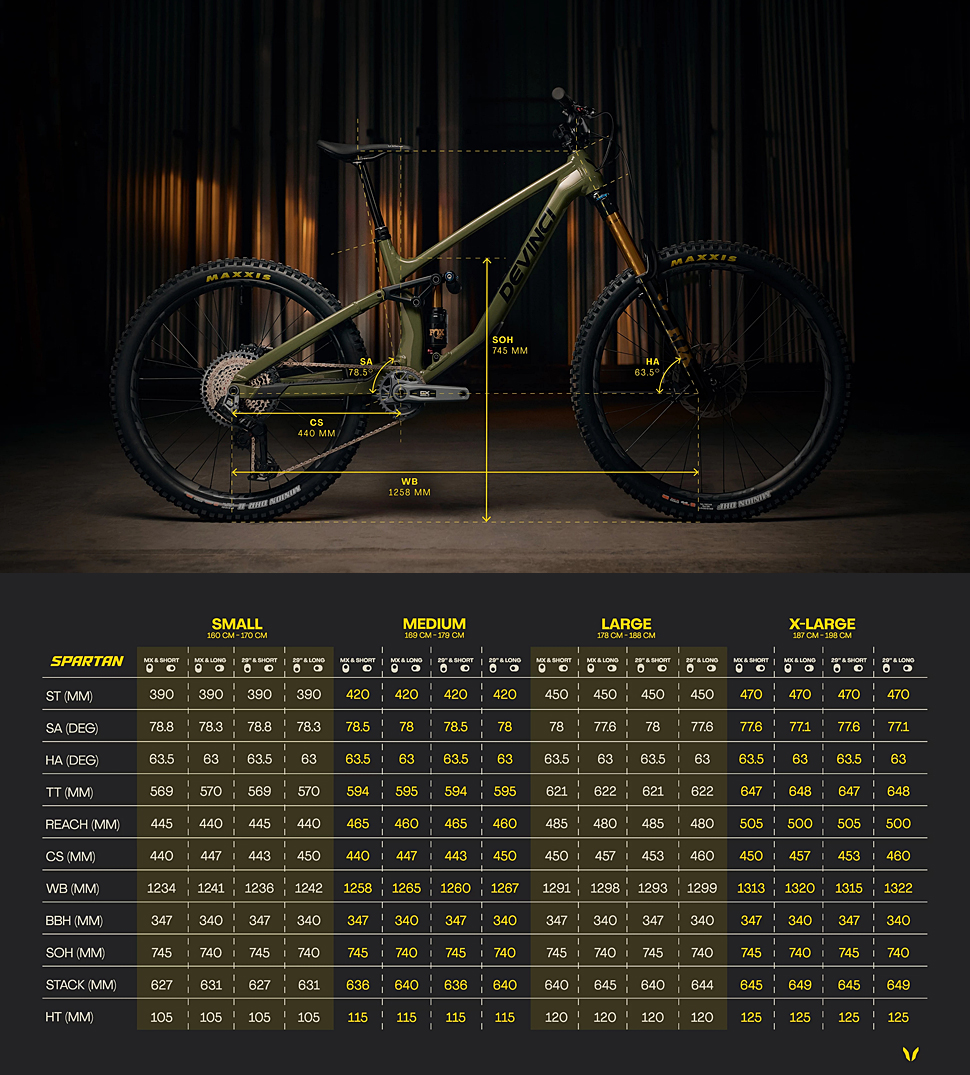 На първо място, новият Spartan се предлага само и единствено с алуминиева рамка. Велосипедите са проектирани, произведени и сглобени в Канада. Макар и малко по-тежки заради избора на този материал, Devinci смятат, че той е най-подходящ за предназначението на подобен тип байк, а производството на тяхна територия им позволява да проследяват стриктно качеството на изработка, което е подкрепено и с доживотна гаранция срещу дефекти при производството.