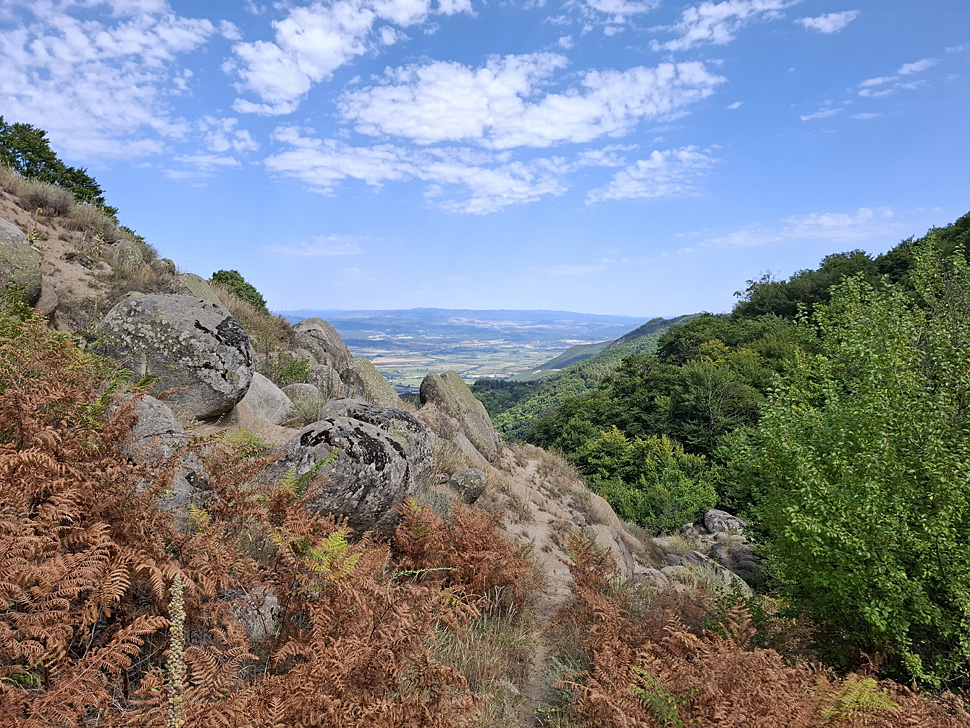 Продължаваме със стръмно спускане по изровен черен път. Спускайки се през гората, напускаме синята маркировка и при достигане на ливада завиваме надясно, започвайки изкачване.
