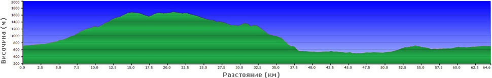 Карането започва с почти непрекъснато изкачване – 25 км и близо 1100 м денивелация – числа, които оправдават категоризирането на маршрута като физически труден.