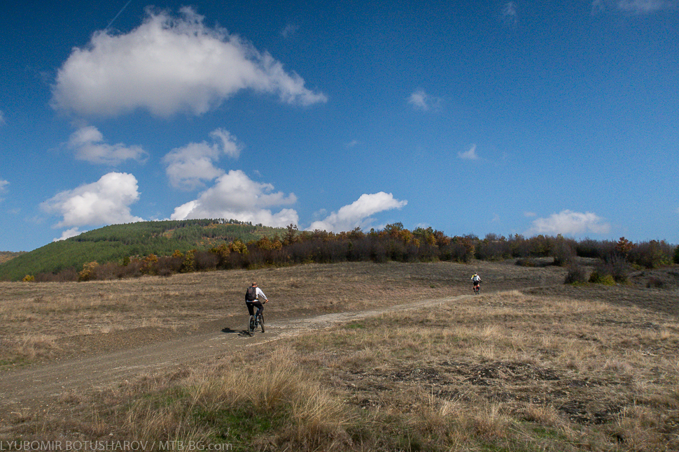 В т.12 (3.7 км) достигаме пореден разклон, където сме надясно и веднага след това в т.13 пътят се разделя на три – десният слиза в посока селото, а маршрутът продължава по средния, който започва да се изкачва стръмно по склона, макар и със серпентини. В т.14 отново имаме избор между стръмна пряка отсечка вляво и по-обиколен път вдясно, като след малко се събират. В т.15 (4.8 км) пропускаме по-занемарен черен път вляво, който води към махала Драсин. Малко след това теренът се заравнява и в т.16 следваме основния черен път наляво, оставяйки зад гърба си връх Чуклата и отбивката към него. В т.17 пропускаме една невзрачна отбивка вдясно, но по-нагоре, в т.18 (5.6 км) е време да изоставим основния път и да започнем спускането по един стар и занемарен черен път, превърнал се почти в пътека. Това се случва точно преди достигането на един по-голям разклон с оброчен камък при него.